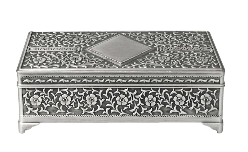 Russell Collection Giftware – Diamante Jewellery Box Pewter Finish Small