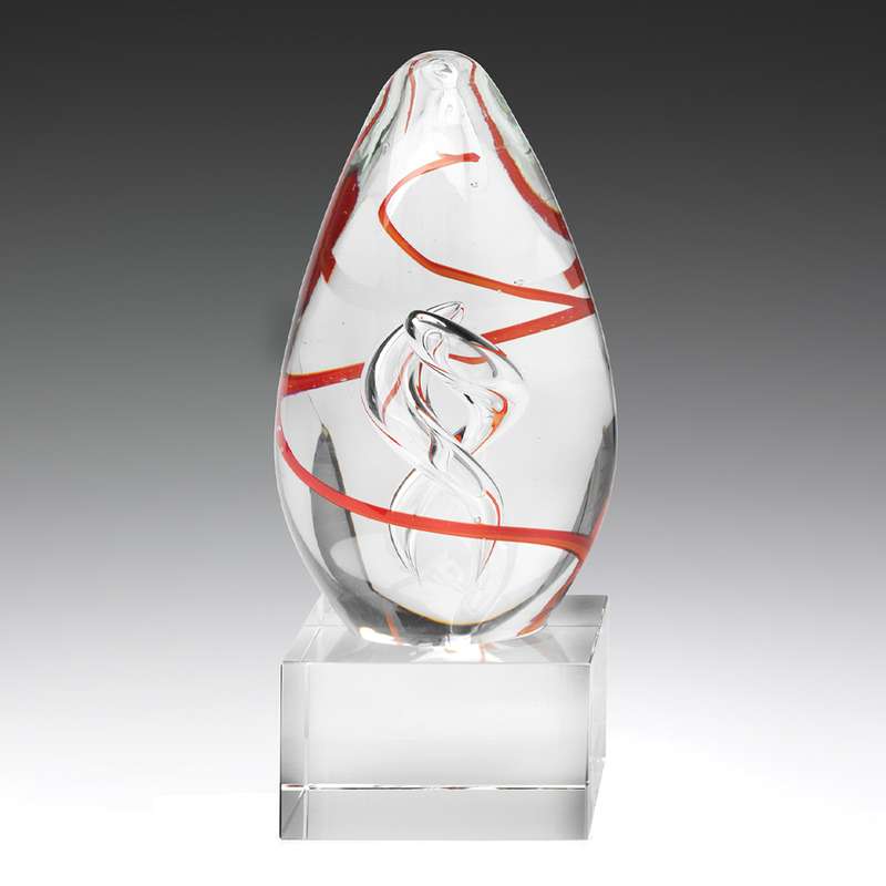 Stunning award, the Origin features unique swirling red & clear pattern encased in crystal dome.