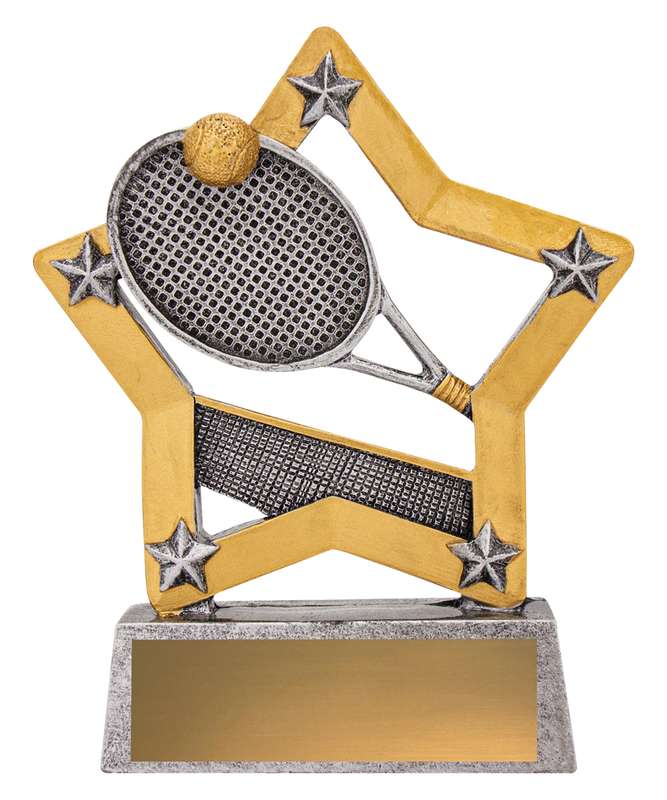 Affordable and popular Mini Star Tennis trophy for kids and participants both male and female. An attractive star inspired design, classic silver and gold colours, well suited for bulk orders’.