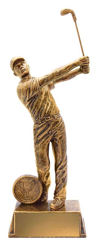 The ‘Elite’ design of Golf trophies provides male and female versions – golfer captured perfectly mid-swing and finished in classic antique gold. Excellent idea to recognise the achievements of your top performer. Option for customisation.