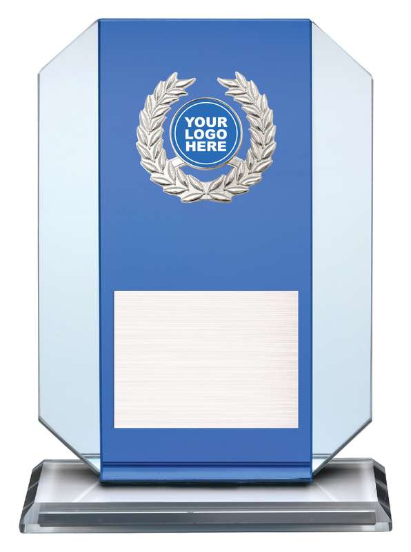 Striking design of glass trophy. Available in different sizes. Blue mirror feature makes this a standout design of award.