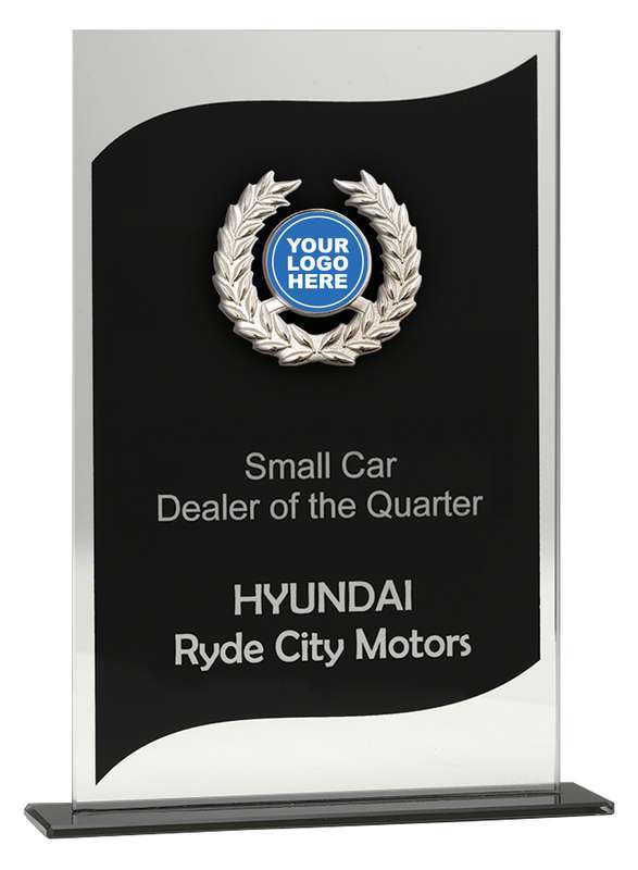 Budget series of glass awards with black and silver elements offer elegant and simple design to show off your logo insert.