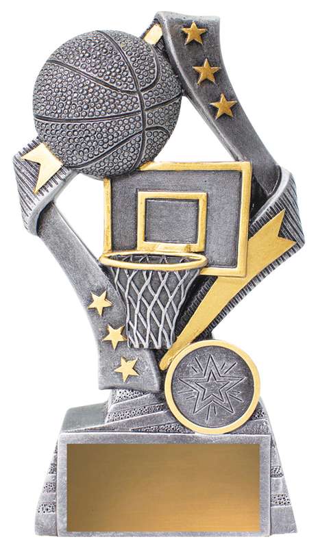 Dynamic basketball trophies perfect for male and female players at your event. These ‘Flag’ basketball trophies feature a stylish star based design with iconic ball & net elements.