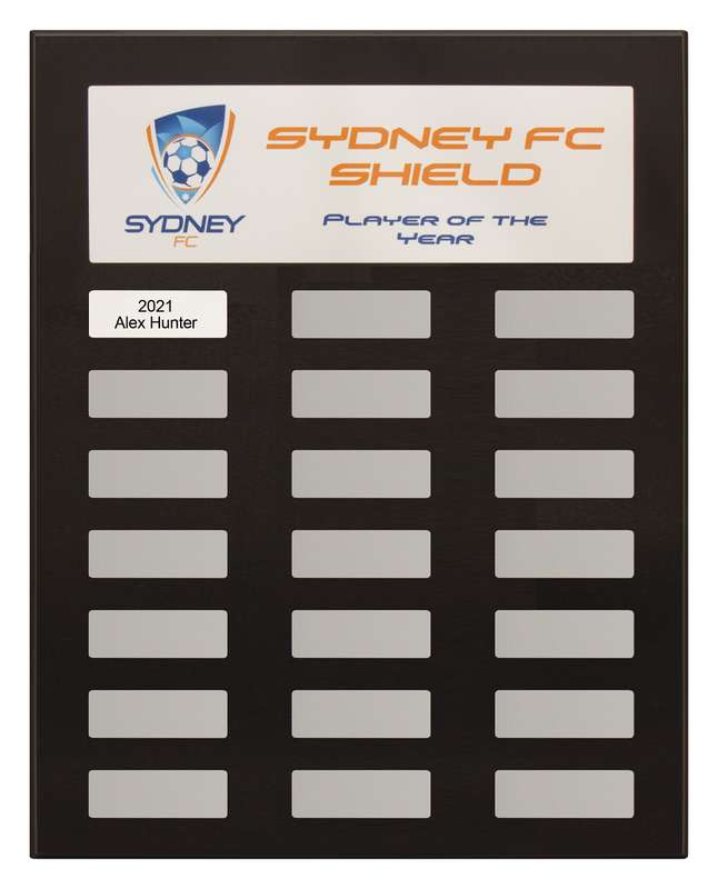 Beautiful sleek black piano finished plaque with colour printed title plate. Plaque includes plate place holders allowing for ease of future use. Simply place future plates over the perfectly aligned place holders. Price includes colour printed title plate and first name plate engraving. Logo artwork is available at an additional cost.