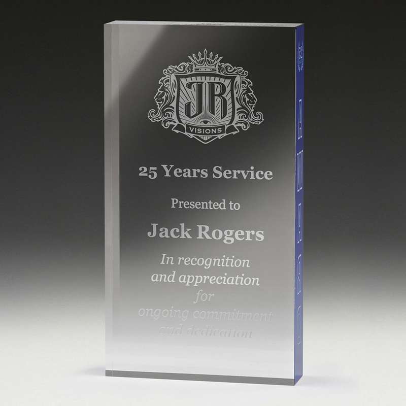 The Blue Palisade presents a nice broad area for your decoration requirements – the innovative blue side panel allows for an additional engraving area.