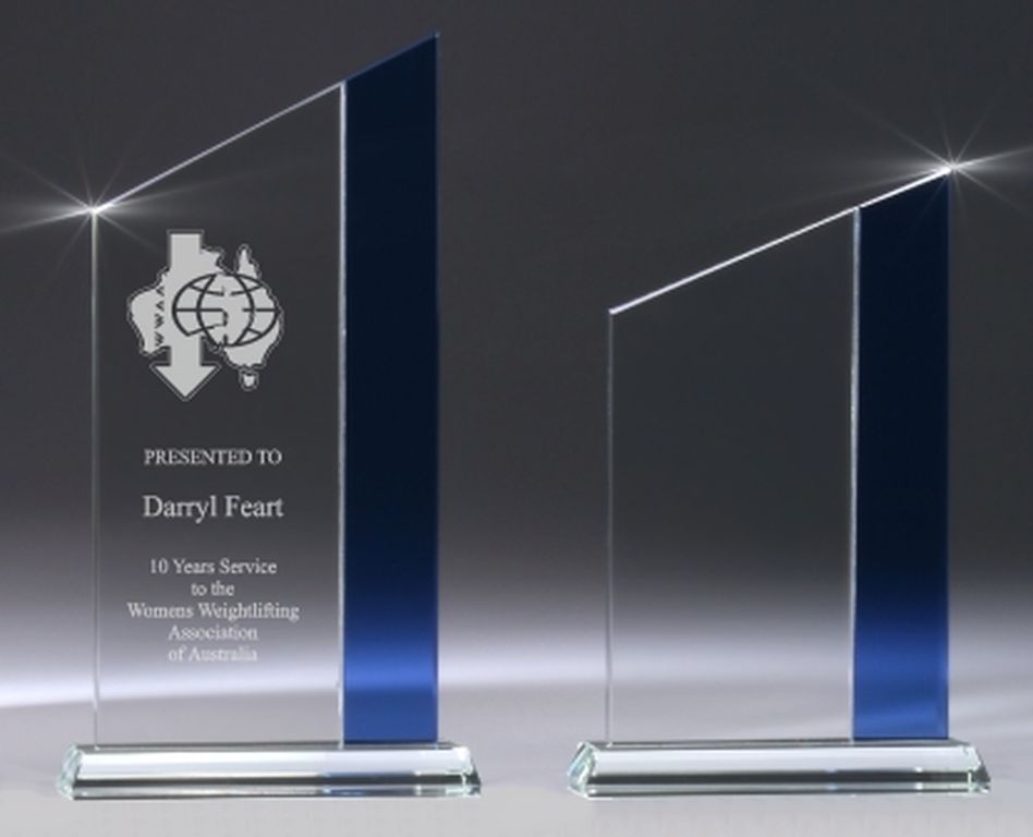 The Blue Zenith Glass Award in 2 sizes – affordable award series supplied in presentation gift boxes. Glass trophies feature blue vertical panels to offset engraving and elevate the effect of the awards. Part of the extensive range of glass awards and trophies available.