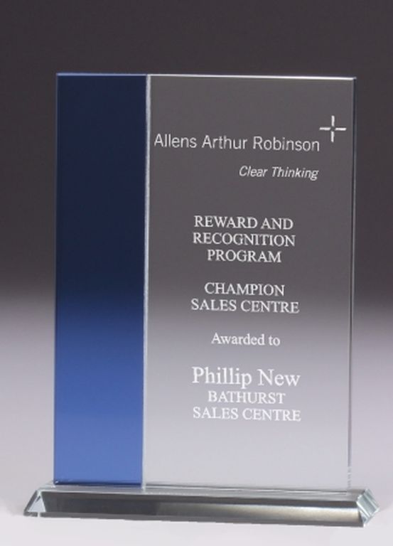 The Vision Glass provides an affordable award series in glass – with interesting blue glass panel offset – in 3 convenient sizes. Quality glass awards to celebrate corporate achievement or individual success and available in presentation gift boxes.