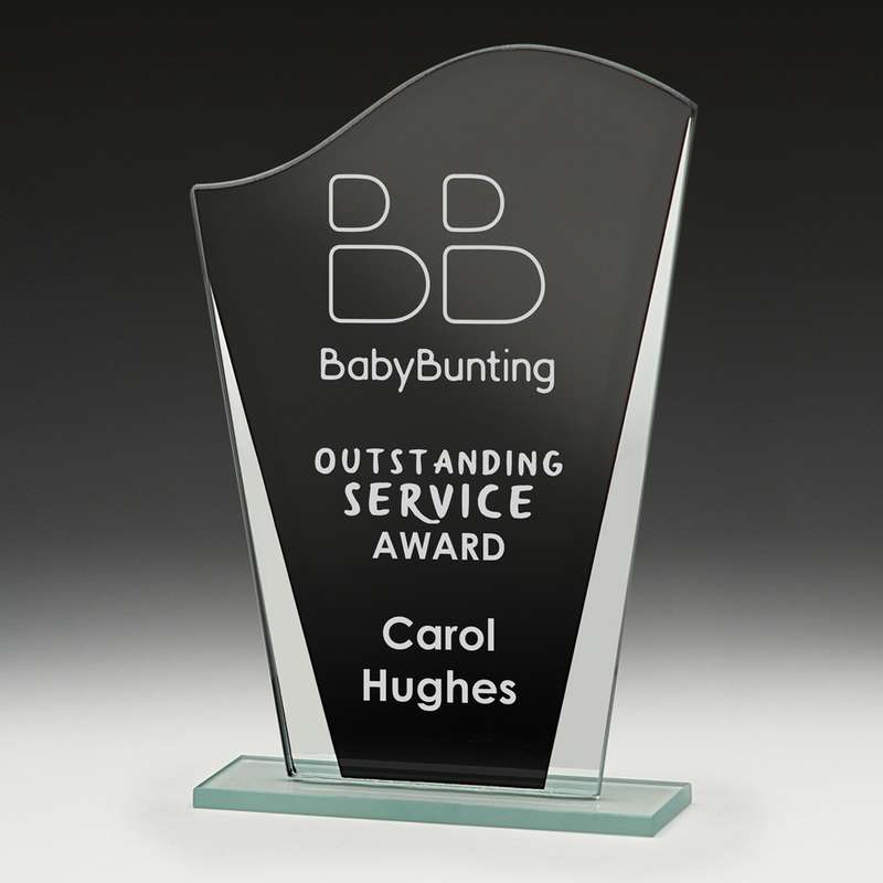 Budget glass trophies feature patented black engraving panel to showcase your engraving. Vesper awards offer an appealing design at fantastic value.