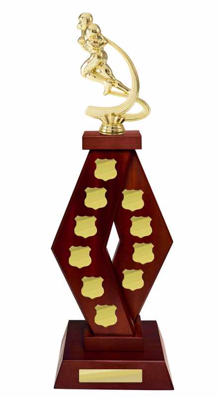 Unique diamond column perpetual trophy. For the topper you can choose a logo holder or select a figurine suited to your sport or activity (Ask us about our many figurines to match your sport or activity).