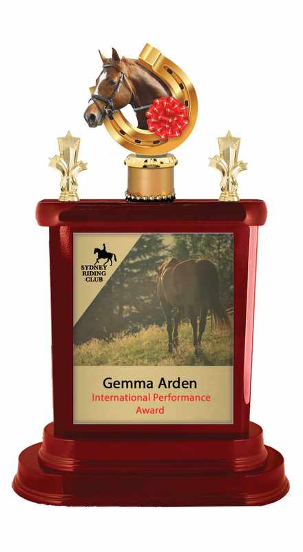 Colour printed trophy award on timber, for the topper you can choose a logo holder or select a figurine for your sport or activity (Ask us about our many figurines to match your sport or activity).