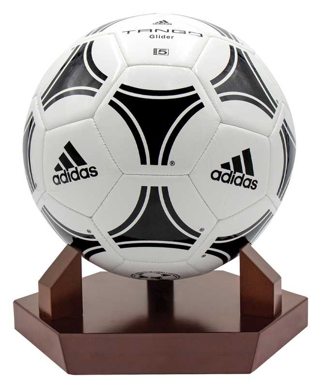 Ball Mount or Holder for round balls, in prestige finished walnut timber is ideal for presenting and storing that precious game ball. Effective as an award for coaches and managers and club members as well as top performing players and participants. Design for soccer, netball and basketball. Part of the extensive range of timber items and bases on offer.