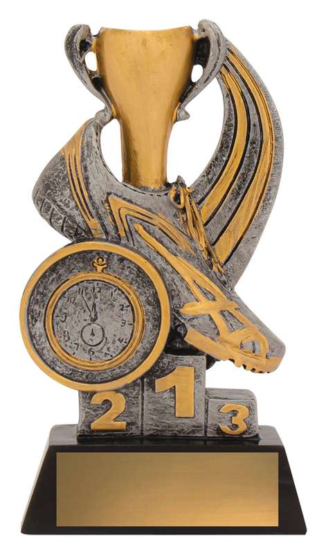 The Athletics Podium trophy presents a budget option with an appealing design of iconic track elements and finished in classic antique silver.