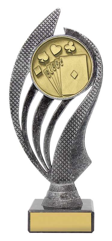 Husky series of trophies on premium black marble allows for different award options for your activity. Appealing antique silver and gold combination over number of sizes.