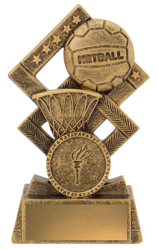 Excellent pair of netball trophies well suited for larger club orders feature ball & net design and eye-catching multi-star elements. Great position for your club insert.