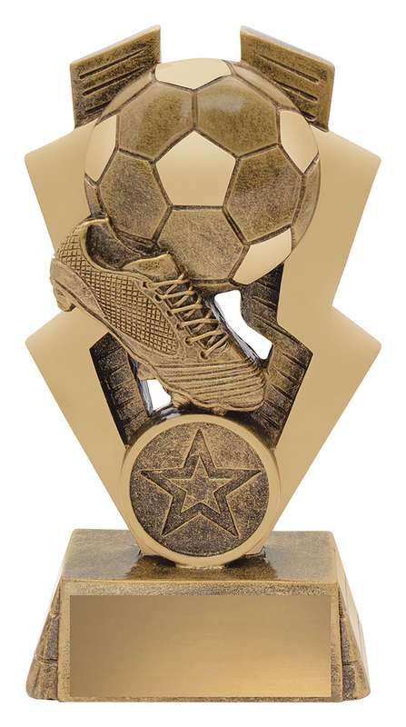 Brilliant series of gold trophies for Football with lightning bolt features and elements for your sport. Central space for logo.