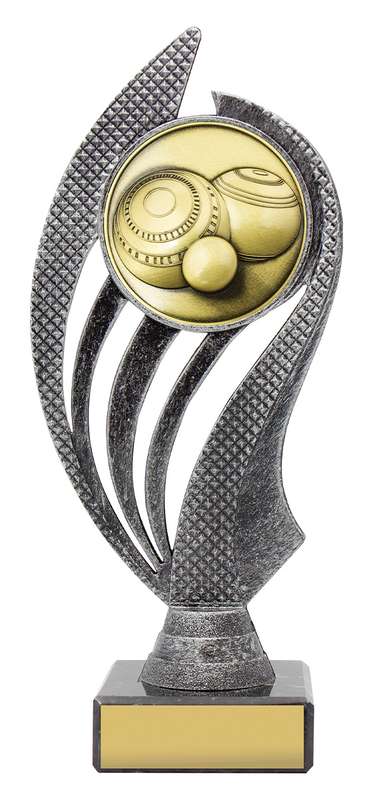 Husky series of trophies on premium black marble allows for different award options for your activity. Appealing antique silver and gold combination over number of sizes.