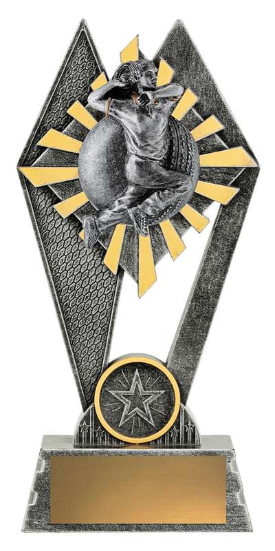 The Peak Series – for Cricket – is an innovative trophy series offering super value for such an impressive size range. An elevated design that showcases a female bowler theme against a vibrant sunray style background.